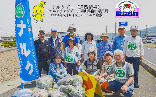 2024年度ナルクデー ナルクが設立された1994年4月20日を記念し、2020年度の定時総会で、毎年4月20日を「ナルクデー」として設定しました。NPO法人の原点である「地域社会への貢献活動」を環境美化として全拠点挙げて展開をしてきました。 参加拠点に「のぼり旗」を贈呈し盛り上げを図っています。倉敷拠点の活動枚方拠点の活動江別拠点の活動