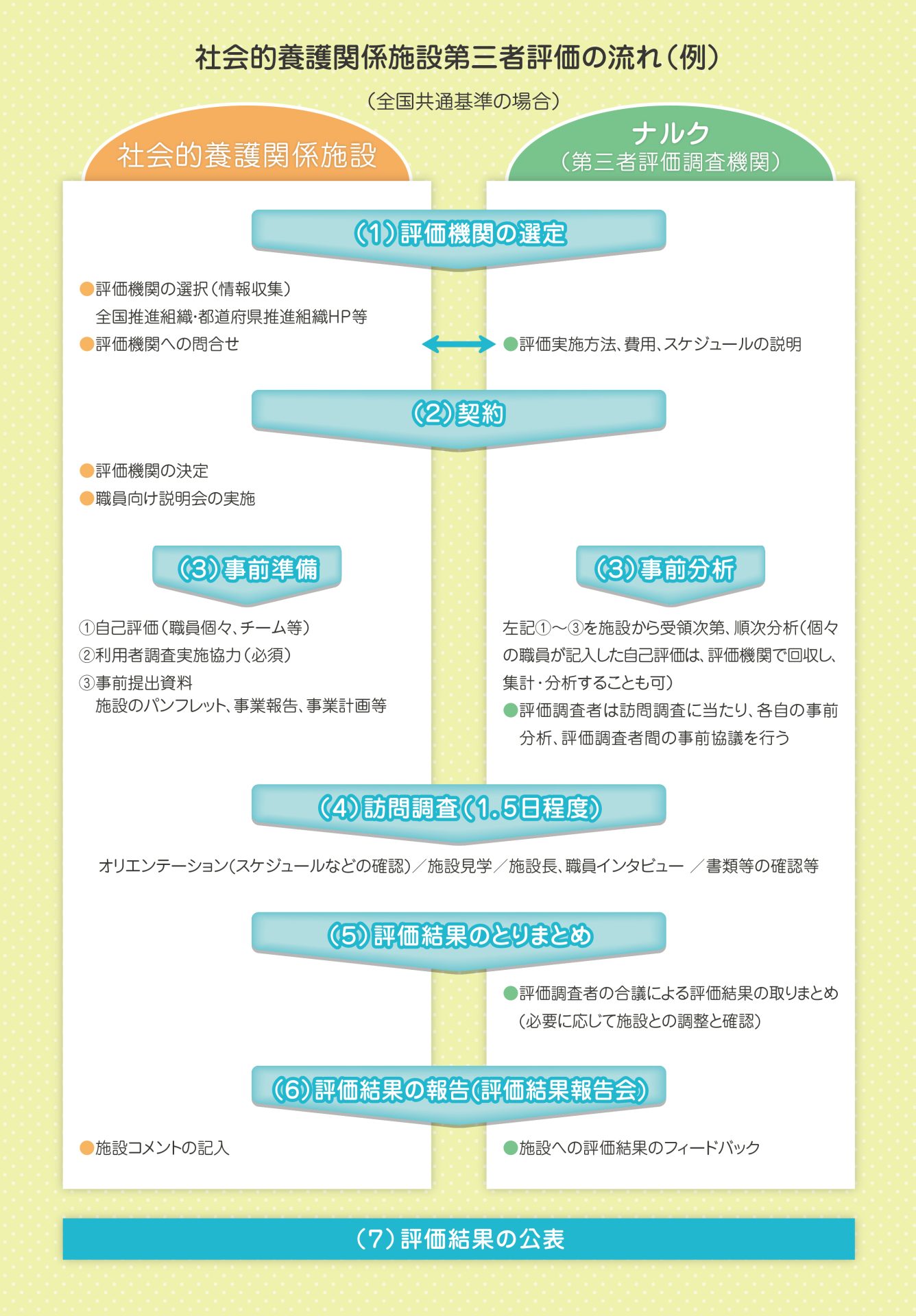 大阪と神奈川のナルク福祉調査センターでは、全国共通の評価基準に基づきサービスの品質の評価を行い、評価結果を公表することで、サービスの改善につなげ入所者の福祉の向上に寄与することを目的としています。