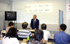 ナルクシニア介護サポーター第1回養成講座開講近畿の5拠点を対象にインストラクターを養成本紙前月号1面でお知らせしたように、ナルクなどボランティア団体に近々要請が増えることが確実視される「要介護TU程度のサービス」に応えるための、表記養成講座の第1回がスタートした。 今回は近畿の5拠点(びわこ湖西・京都・奈良・大阪・神戸)から選抜された17名が参加、この17名は11月9日の終了式で「修了証書」を受け取ったあと、それぞれの拠点に帰り、インストラクターとして各拠点で「ナルクシニアサポーター養成講座」の講師に当たることになる。 ![]() 10月5日(金)午前10時から先ず高畑会長の挨拶を兼ねた講議で講座は始まった。 講議の中で高畑会長は「今日お集まりの皆さんの目を見ると、いきいきと輝いており、嫌々参加していないことがすぐ分かりました。私も家内と2人でホームヘルパー3級の講座を受けに行ったときのことを思い出します。私のボランティア人世はそこから始まったように思います。どうぞ皆さんもせっかくの機会ですから、頑張って全課程を受講され、第1号のインストラクターとして羽ばたいてください。1回でも休まれると修了証書が出ないそうですから(笑い)頑張ってください」と挨拶、この研修の意義、活動の中での位置付けなどを分かりやすくユーモアを交えて話された。 午後からは崇嶋講師による「寝たきりにならないための実技」と題する離床指導があり、講師のユーモラスな身振り手振りに大爆笑のうちに初日を終えた。 なおこの養成講座は今後順次、北海道・豊北・関東・・・と各ブロックで開催され、多くのナルクの会員が身体介助ができるようになり、また会員外にもこの講座を開放し、ナルクの存在価値を高めていく計画である。 団塊世代への次世代育成セミナー団塊世代の大量定年がピークを迎えている。各種のボランティア団体が、懸命に呼びかけをしているが、ナルクでも「何かのきっかけがあれば、必ず大量の入会が期待できる」として、いろいろな対策を模索している。 このほどその一環として「こども未来財団」と共催で「次世代育成セミナー」を開催することとした。 これは子育て世代の要望を踏まえ、団塊の世代が地域の「子育て支援活動」や「次世代育成」に関心をもってもらおうという狙いで企画されたもので、合わせて団塊世代の「企業から地域へ」という流れをスムーズなものにしようという意図で計画された。 セミナーの内容は、お茶の水女子大学生活科学部の牧野カツコ客員教授の基調講演の後、パネルディスカッションが開かれる。 これにはナルクの高畑会長もパネラーとして参加する。その他のパネラーはNPO法人子育て広場全国全国連絡協議会奥山千鶴子理事長、大阪警察病院看護師、団塊の世代代表等が予定されている。 なおコーディネーターには、読売新聞の野間裕子編集委員が当たる予定。 日時:12月8日(土) 13時〜16時30分場所:アビオ大阪 小ホール 大阪市中央区森ノ宮中央1ー17 電話:06ー6944ー1151 参加希望の方は、拠点を通じて本部に申し込んでください。 ![]() ![]() ナルクの輪に支えられて 関谷 絢子(江別) 今年はとても暑い夏でした。そして、私にとっては様々な老いの問題とナルクの「暖かい輪」を感じた夏でもありました。私の父母は大阪の寝屋川に2人で住んでいます。父が突然6月に京都の病院に入院しました。近くに身内がいなく、高齢の母が一人で看病するのは大変なので、拠点に相談したところ、ナルクの遠距離介護の利用を勧めてくれました。 7月に、「ナルク寝屋川」に伺い代表の竹田さん、コーディネーターの長村さんとお会いしてご相談しました。初めてお会いしたのにナルクの仲間というだけでとても親しみを覚えました。通された事務所の2階に茶道具が並んでいる和室があるのがとてもうらやましく思いました。 極暑の中、突然の依頼にも拘らず、親身になって色々きめの細かいお世話をしてくださり感謝でいっぱいでした。改めてナルクの暖かい輪を感じました。お陰さまで父は9月から寝屋川の病院に転院できました。その後も何かと母を見守って頂いております。 母の介護のお願いに伺ったのに、活動の話で盛り上がり、本部を中心とした幹に沢山の拠点の花が咲き、全国の仲間が頑張っているのを肌で感じ、元気をもらいました。 ナルク江別は設立して8年、自分や江別の仲間からも忍び寄る老いを感じるときがあります。夫婦で入退院を繰り返している会員、難病と付き合っている会員、昨年の総会後の講演で、お元気に戦争の体験談を聞かせてくれた方が8月に旅立ちました。やりきれない現実に出会うこともありますが、仲間の暖かさ、思いやりのこもった笑顔に「困った時はナルクがあるよ」「ピンピンころり」を心の片隅に、ナルクで出会った友と老いと上手に付き合っていけたらと思います。 ナルクには色々な仲間がいます。事務所に家庭菜園の野菜を持ってひょっこりと来てくれる仲間