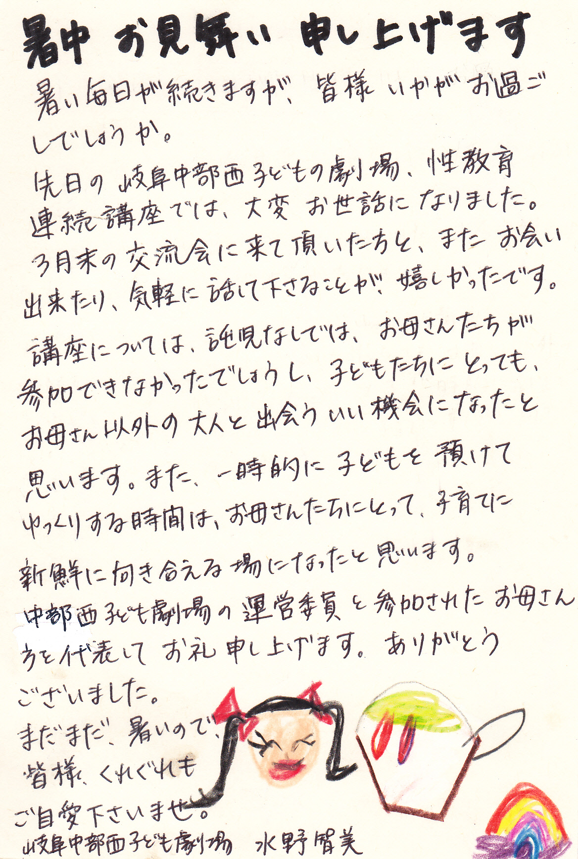 ナルク岐阜は、お母さん方の子育て団体『岐阜中部西子ども劇場』を支援しています。