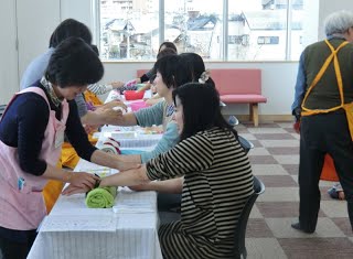 | 通常時の会場風景(守山) | 帽子編み物(守山) | ||||