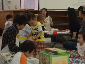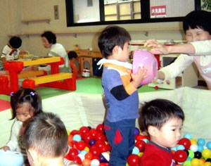 子育て支援は、平成7年より活動しいてます。最初の頃は、お母さんと離れるのがいやで、泣かれてしまい最後までおんぶしていた事もありましたが、子供さんの笑顔をみると、疲れも取れ嬉しくなります。