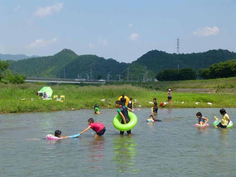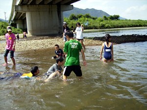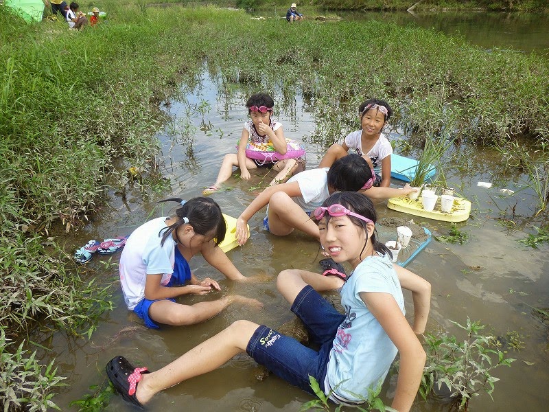 注意事項もよく聞いて、 皆で食べる食事はおいしいよ。 川の水は冷たいよ。 |