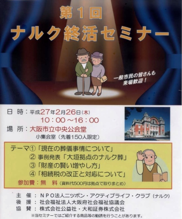 ・「終活」をテーマに、行政、教育機関、文化センター、企業、市民団体におい て講演を行うと共に公益社の遺族サポート「 ひだまり会」の運営スタッフとしてグリ