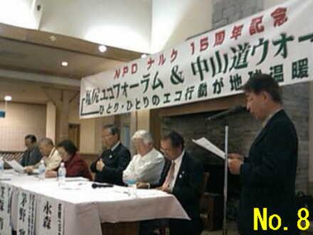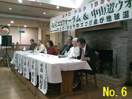 | No.1 毎朝恒例の血圧測定風景 No.2 強い雨の中、色とりどりの傘と雨カッパの列が行く No.3 山吹が咲く急登の塩尻峠を登る一行 No.4 塩尻峠を越えると花の里 No.5 エコフォーラム出席者以外は平出遺跡を通り洗馬宿へ No.6 塩尻エコフォーラムの高畑会長とパネラーの皆さん(フォーラムの出席者数は、80数名) No.7 熱心に聞き入る出席者達 No.8 塩尻エコライフの宣言 No.9 チロルの森に植樹する高畑会長 No.10 チロルの森に植樹する笹森中央労福協会会長 ◆◆◆◆◆◆◆◆◆◆◆◆◆◆◆◆◆◆◆◆ エコふれあいウォークと塩尻エコフォーラム の取材記事が、信濃毎日新聞などに 掲載される。 ◆◆◆◆◆◆◆◆◆◆◆◆◆◆◆◆◆◆◆◆ ※ 詳細は、右のボタンをマウスでクリック。 |