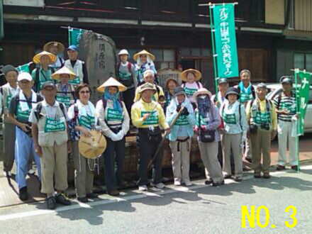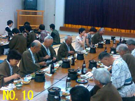 | 今日は連日の坂道の登り下りや長距離歩きではなく、 いつもの半分くらいの距離なので、出発も一時間以上遅く 身体を休める良い一日でした。 元気元気と言っても平均年令68才の集団、最後まで気が抜けません。 No.1 遅い出発で余裕のウォークですが、今日も暑い… No.2 街道沿いの水舟、檜の丸太をくり抜いた水舟に裏山からの湧水が昔も今も注がれている。 No.3 須原宿水舟の前で集合写真、奈良井宿から編みがさ姿が目立つ様になりました。 No.4 水の恵みをいっぱい受ける須原の宿場を歩く No.5 定勝寺で見つけた小さな可愛い石仏 No.6 須原宿の名刹、定勝寺の山門を出る高畑会長ご夫妻 No.7 須原宿のはずれ、道端の案内板と湧水の心使いが嬉しい No.8 道の駅大桑で昼食後、茨木拠点から6名参加し紹介される No.9 JR野尻駅でトイレ休憩後、今夜の宿あてら荘へ向かう No.10 久しぶりに広々とした会場で、途中参加の人を加え和やかな夕食 |