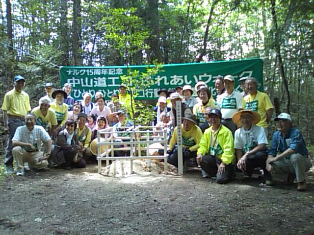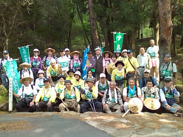 歩きにくい琵琶峠の石畳の道を、往時を想像しながら下り、満足顔の全員